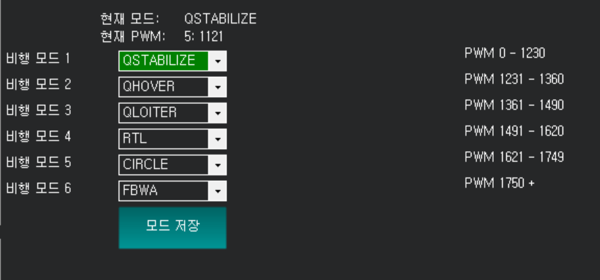 - 6개의 비행 모드를 설정하기 위해 2단카 믹싱을 적용해야 한다.