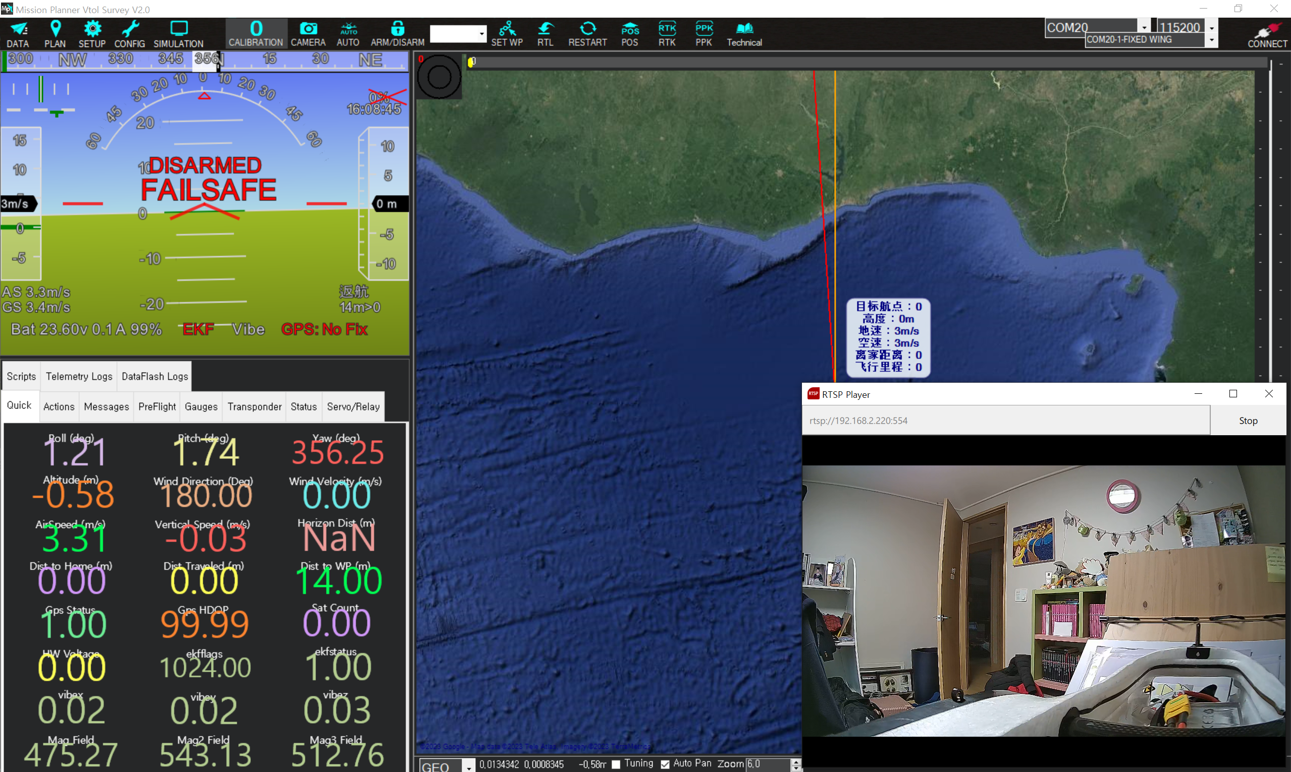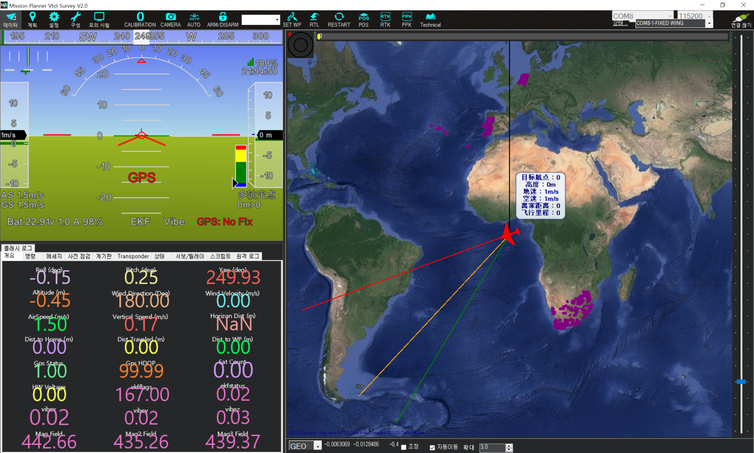 미션플래너의 HUD 항목들도 위와 같이 변경하였음, SatCount값도 바로 확인 가능함