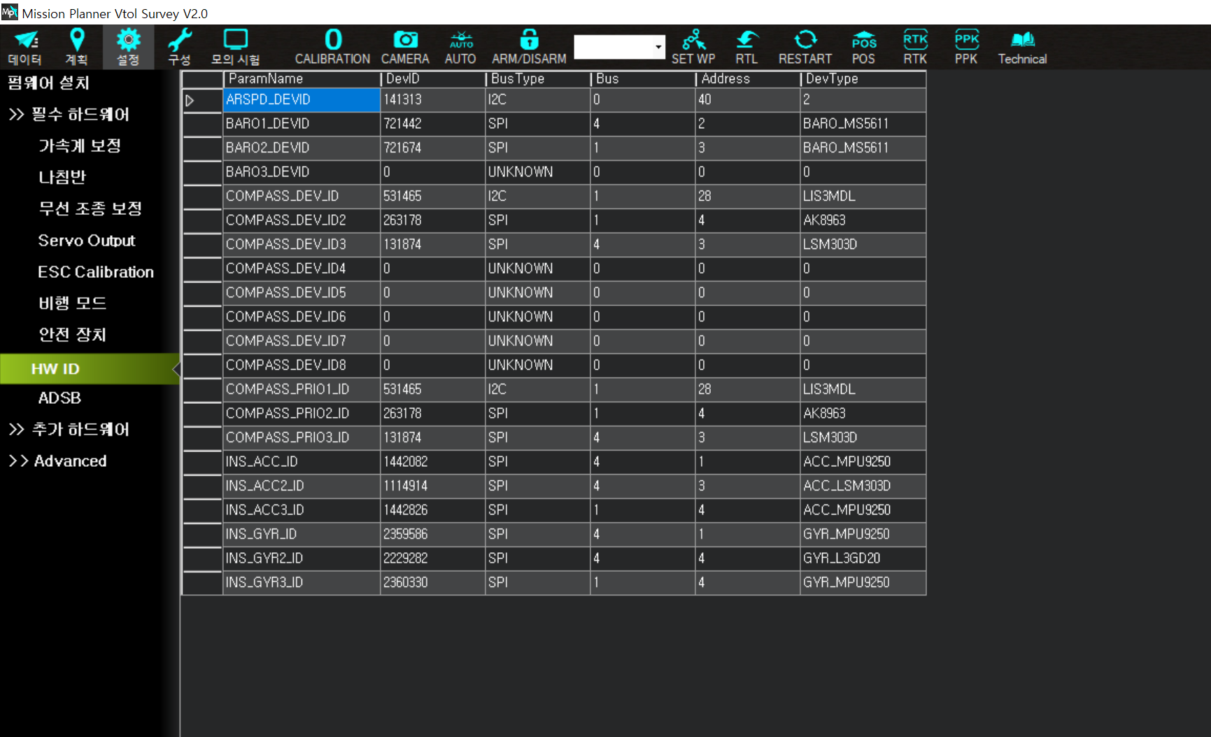 HW ID를 보면 I2C는 속도센서와 COMPASS_1번, LIS3MDL Compass 센서임