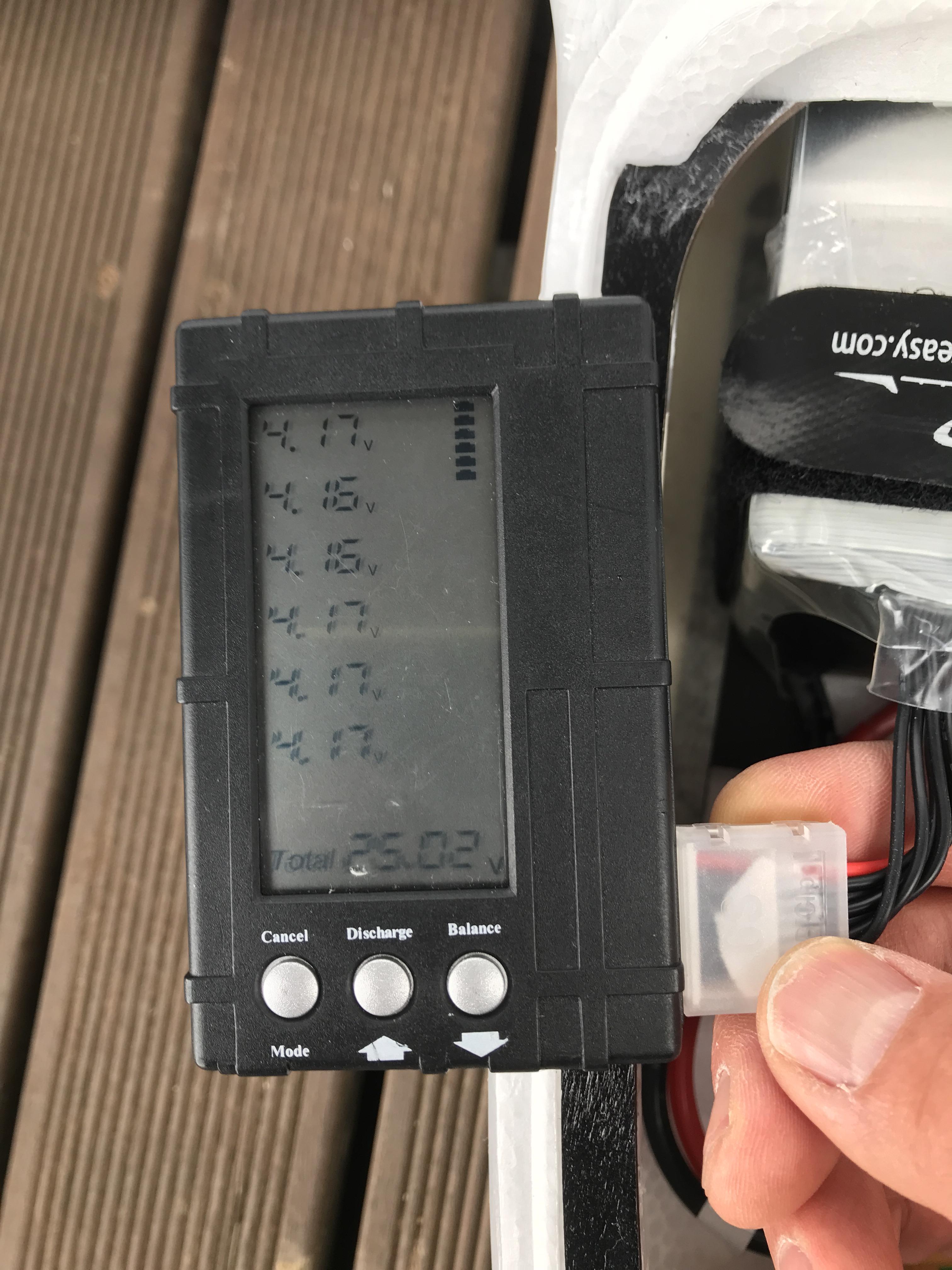 - 배터리 전압상태 체크(리포전압측정기 사용)