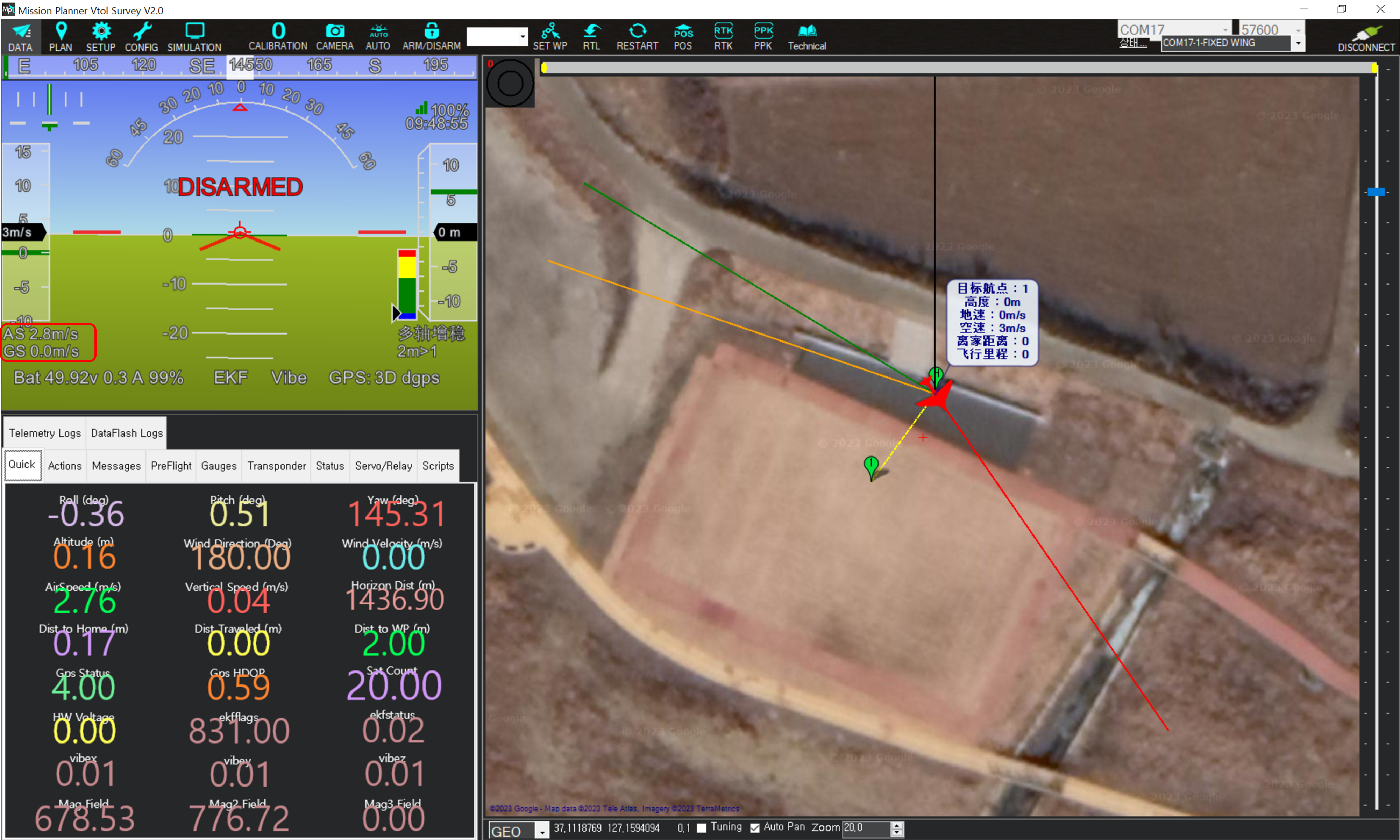 - 기체가 자동으로 VTOLTakeOff, Waypoint, RTL 미션을 정상적으로 수행하는지 확인