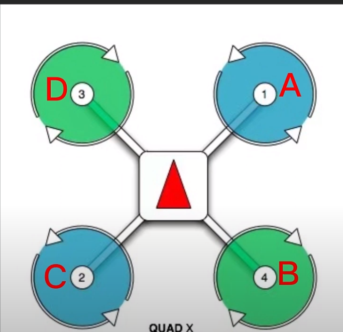 - Roll +방향 회전시 1,4번 모터 출력이 2,3번보다 높아야 함