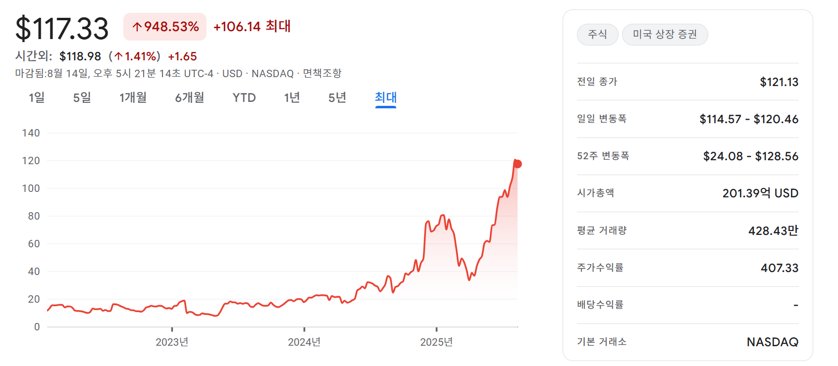 - 최근 1년간 +300% 이상의 상승률을 보였고, 52주 최고가는 $121.50에 달했으며, 베타(변동성 지표)는 3.14로 매우 높습니다 TradingView.