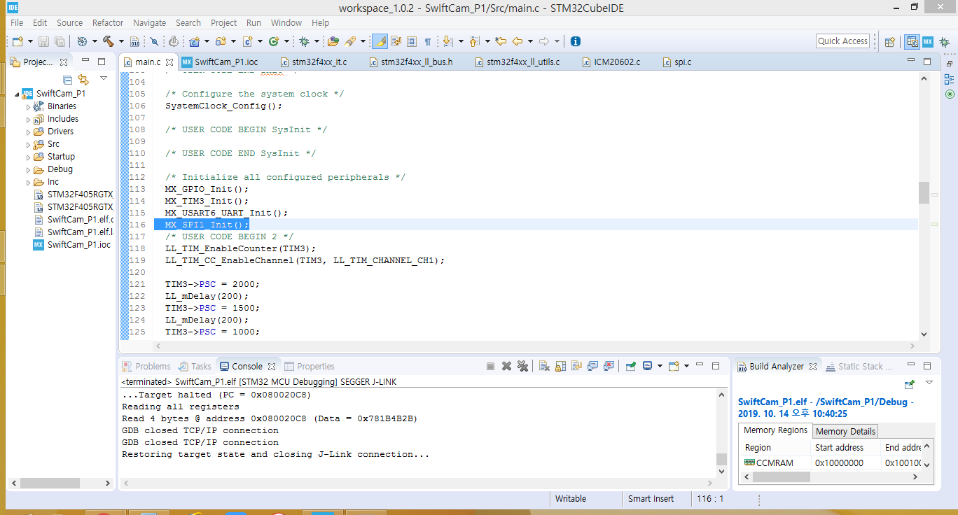 빌드하면 아래와 같이 SPI 초기화함수가 생성된다.