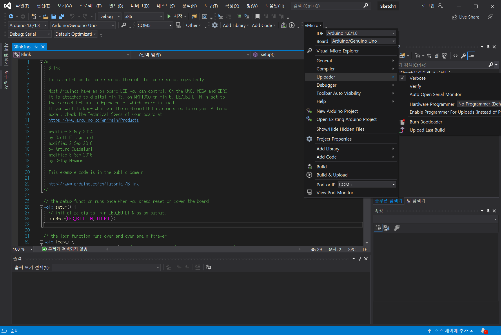 F5를 눌러 실행하면 컴파일이 완료되고, 업로드가 실행된다.